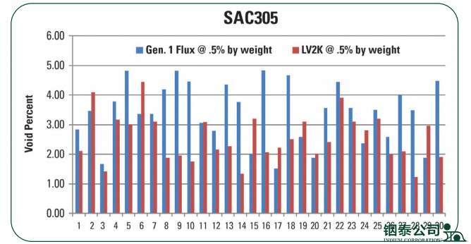 图示:LV2K与第1代助焊剂涂层空洞对比
