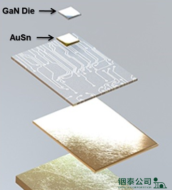 在金锡共晶焊的应用中,如果芯片、基板采用厚金工艺,就需要考虑调整焊料中的金锡比例,以使焊点尽可能接近金锡共晶温度280°C。实际应用中,也要把焊接界面中的金的含量也考虑进去,而不是只考虑焊料中金的比例。通过计算来选择最佳的“非共晶”金锡合金,可以最大限度地减少焊点中的空洞,且提升焊点强度。
