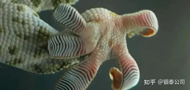 然而,在电子显微镜下,壁虎小小的脚掌上,拥有数以万计的密布腺毛,这种精妙的分级结构,让壁虎的脚掌通过分子间的作用力,无须胶水也能实现可逆、高效且牢固的表面附着。