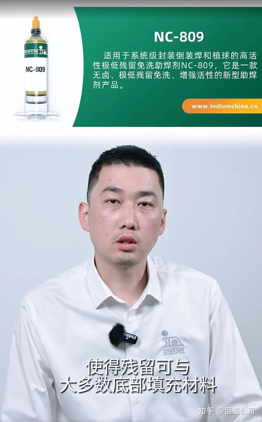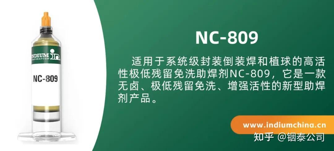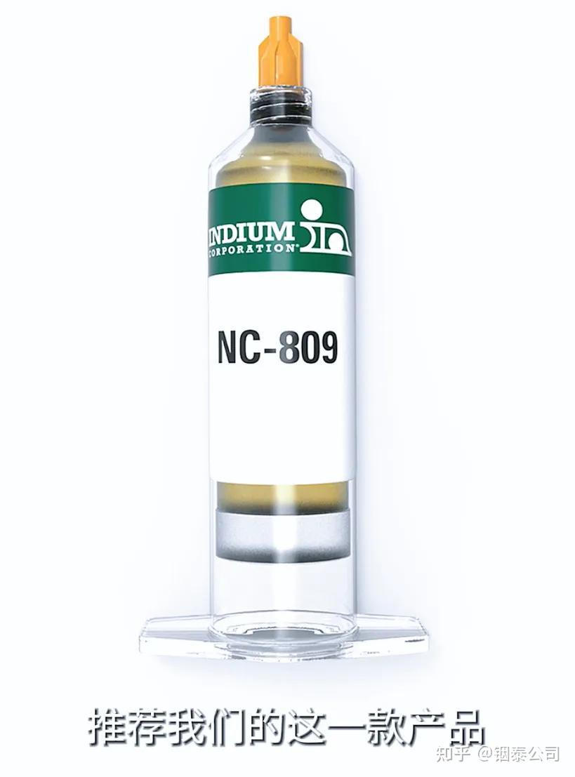 适用于系统级封装倒装焊和植球的高活性极低残留免洗助焊剂NC-809,是一款无卤、极低残留免洗、增强活性的新型助焊剂产品。NC-809优异的润湿能力和独特的生产工艺还使其可应用于预镀锡Mini LED芯片倒装焊接。NC-809可以印刷,可以浸蘸,粘力高,可避免 “飞芯片”的问题。