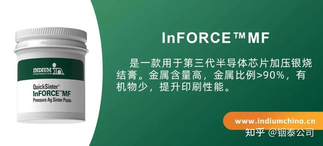 面对市场增长,铟泰公司早已做好了“十足准备”。铟泰公司凭借在烧结技术领域的多年深耕,获得了行业高度肯定。我们的InFORCE™ MF是一款专为第三代半导体芯片加压烧结设计的高金属含量银膏,其金属比例超过90%,有机成分较低,从而显著提升了印刷性能。