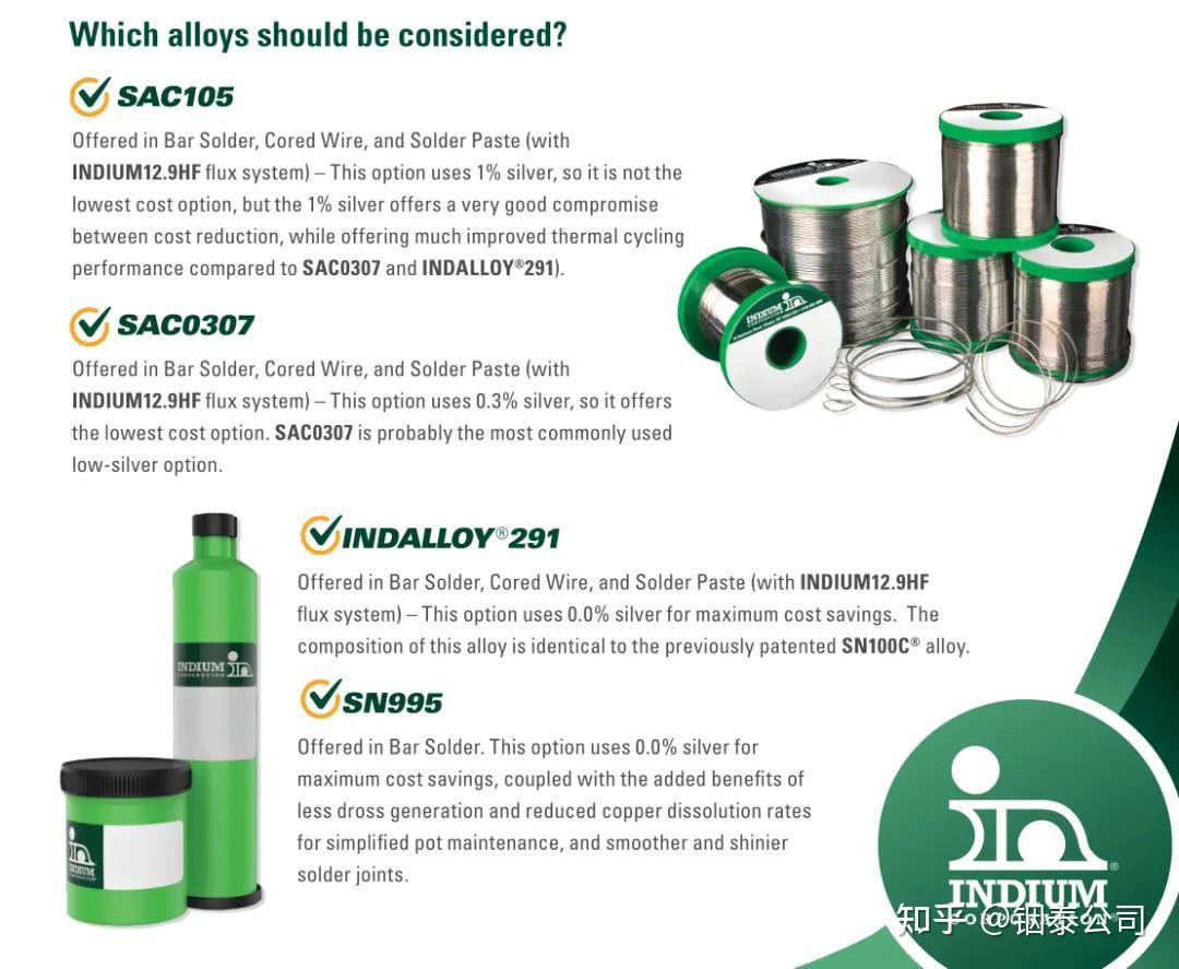 降低银含量,并不意味着牺牲性能。事实上,经过充分验证的低银合金方案,在显著降低材料成本的同时,依然能为众多应用提供稳定可靠的焊接性能。铟泰公司有多种成熟低银合金可选,它们各有侧重,以适应不同需求: